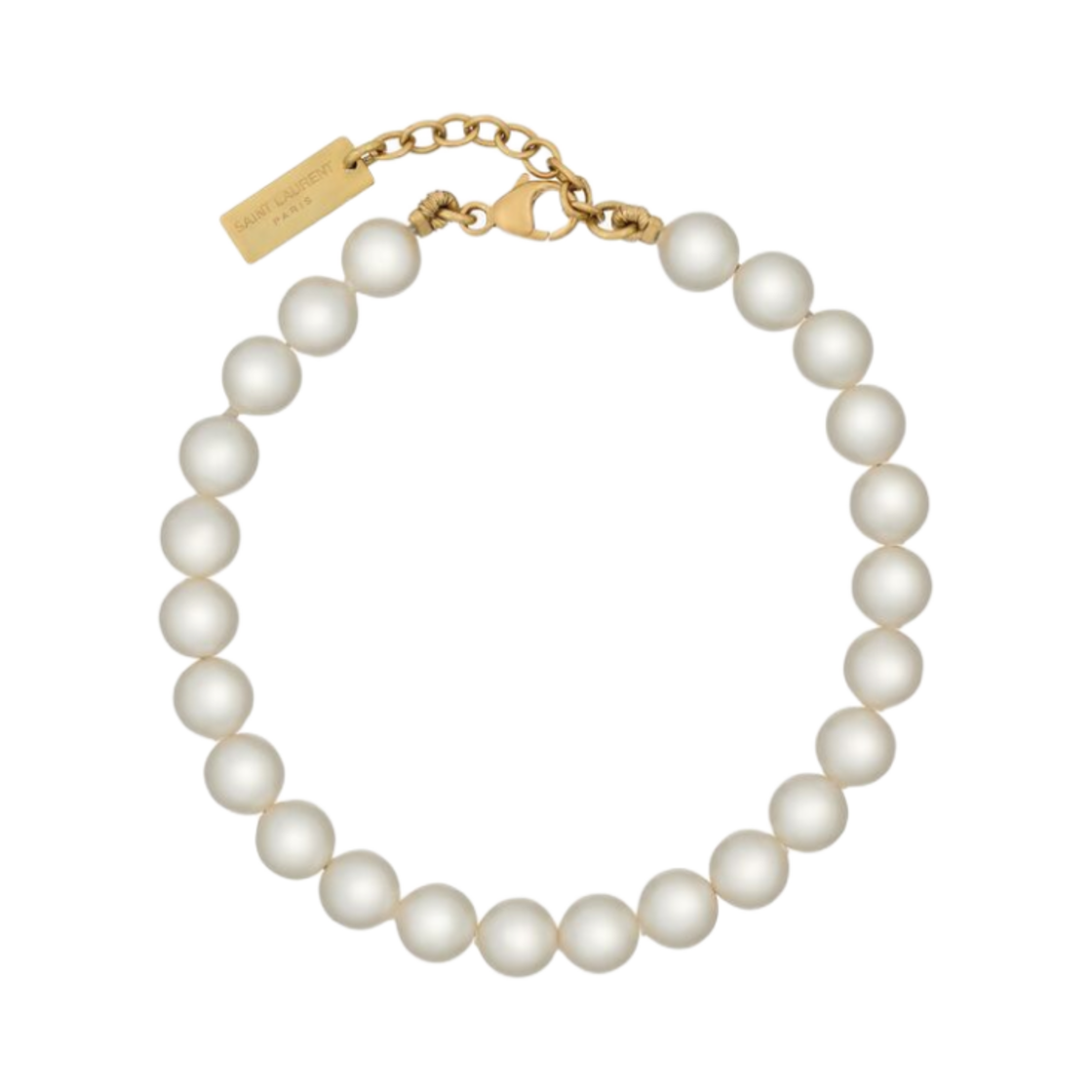 (W) 생로랑 펄 브레이슬릿 메탈 크림 골드