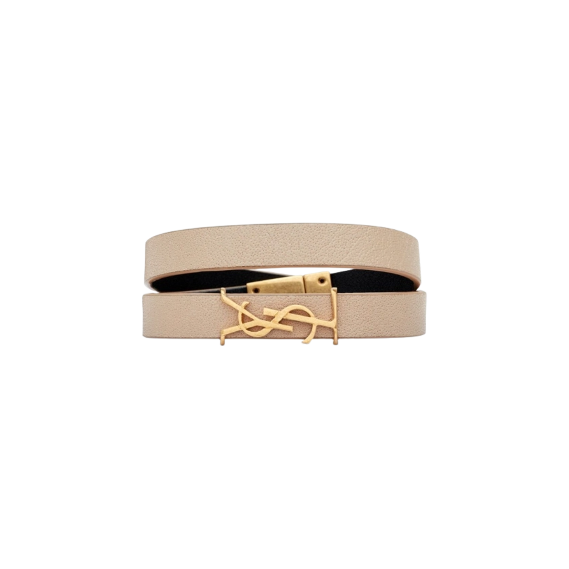 (W) 생로랑 레더 앤 메탈 오피움 브레이슬릿 다크 베이지
