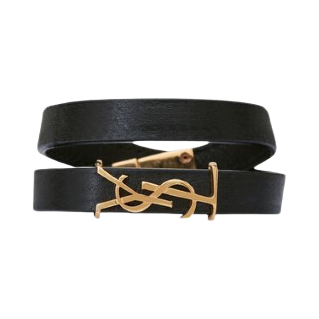 생로랑 레더 오피움 브레이슬릿 골드 블랙