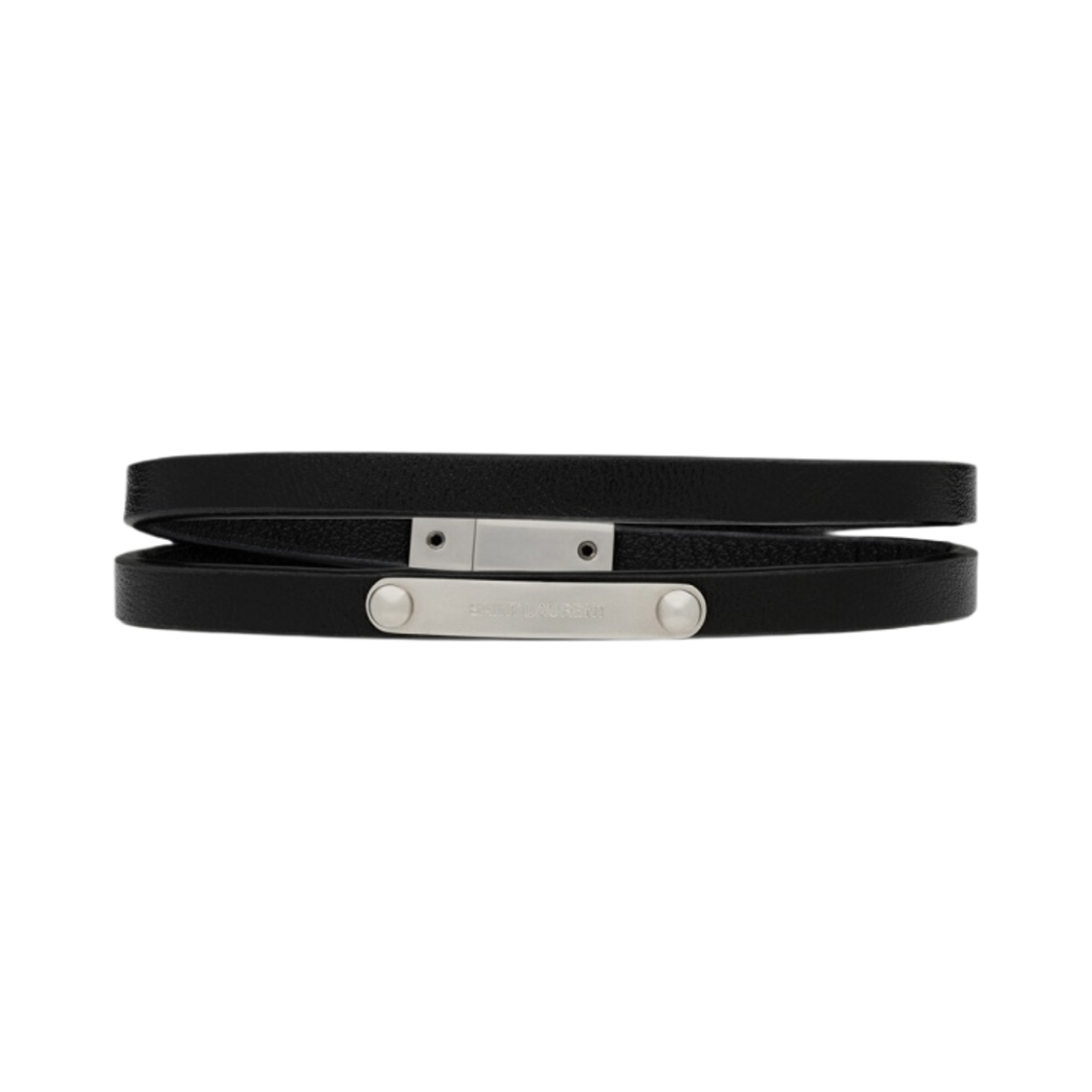 생로랑 레더 오피움 브레이슬릿 실버 블랙