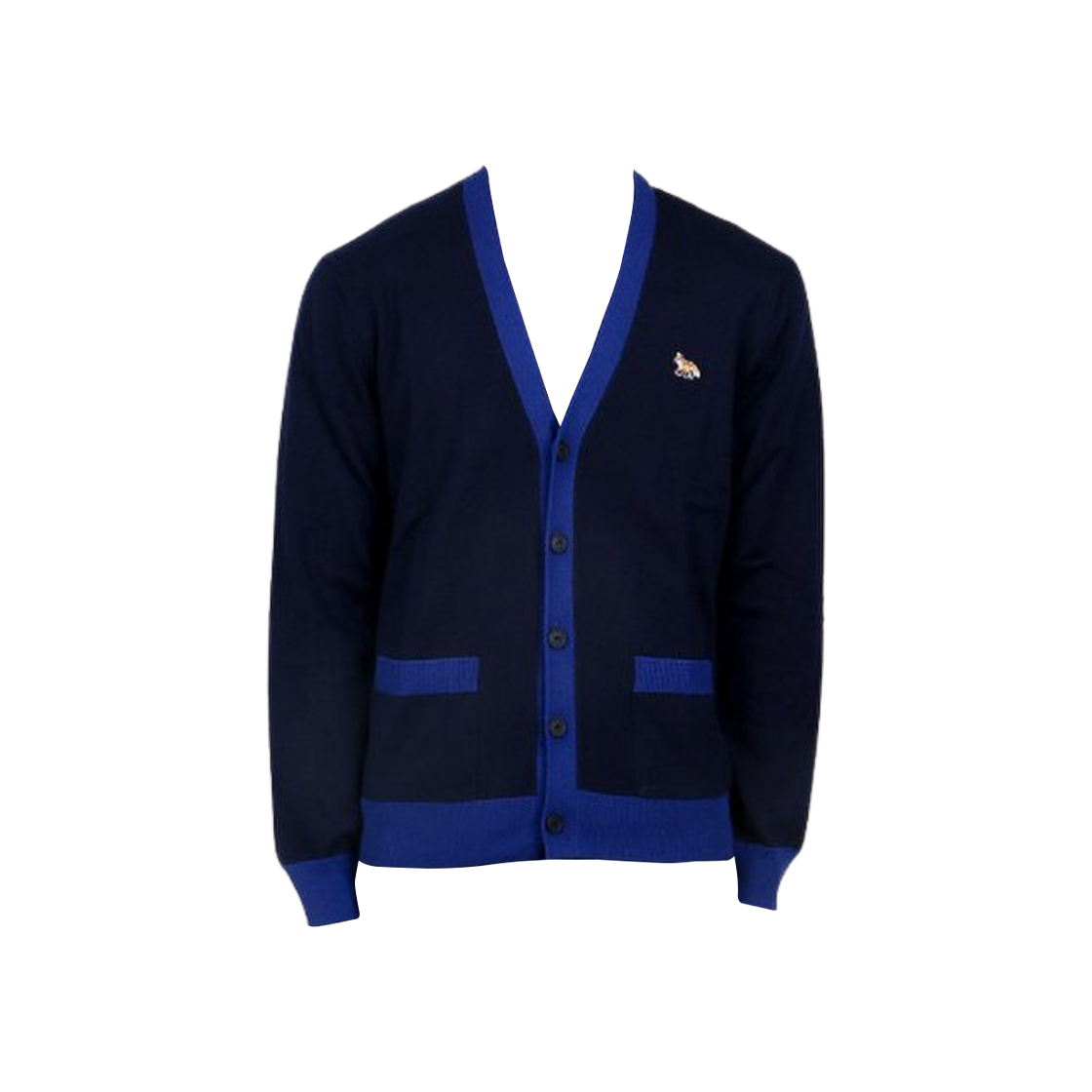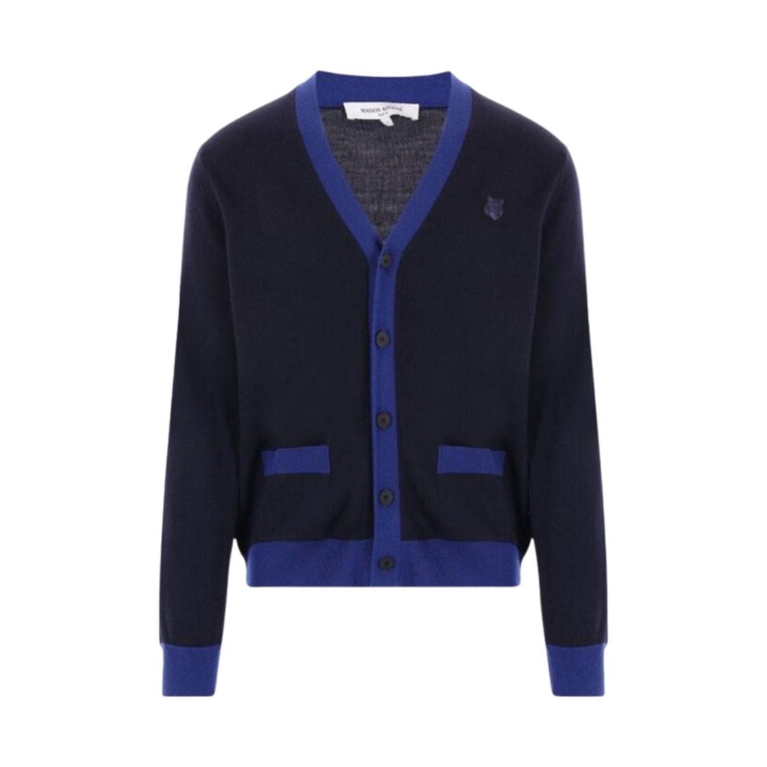 메종 키츠네 볼드 폭스 헤드 패치 바이컬러 가디건 잉크 블루
