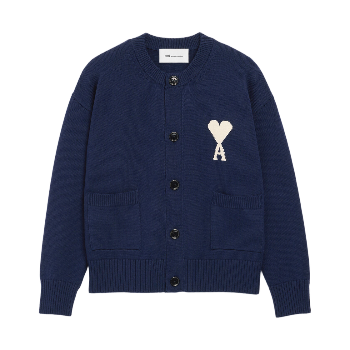 (W) 아미 블루 울 크루넥 아미 드 하트 가디건 잉크 오프 화이트