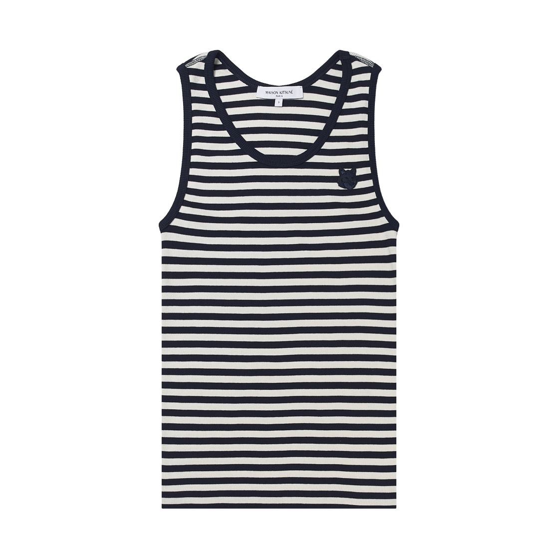 (W) 메종 키츠네 볼드 폭스 헤드 패치 멀티 스트라이프 립드 탱크 탑 잉크 블루 밀크
