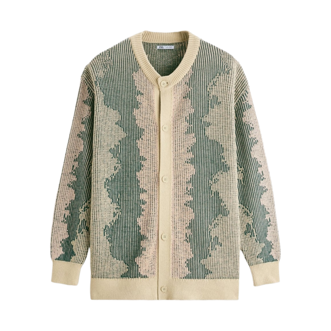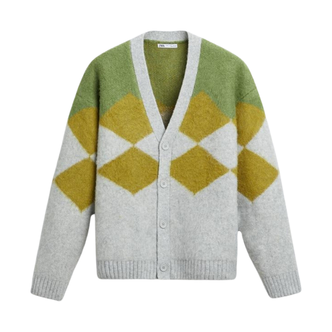 자라 다이아몬드 자카드 가디건 라이트 그레이