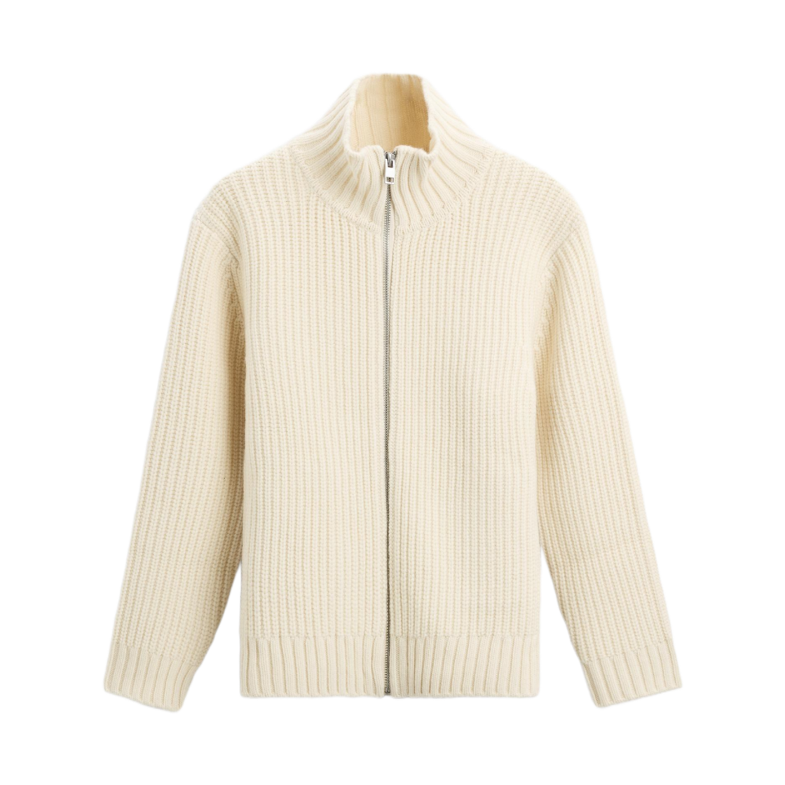 자라 x 챔피온 자카드 케이블 니트 가디건 에크루