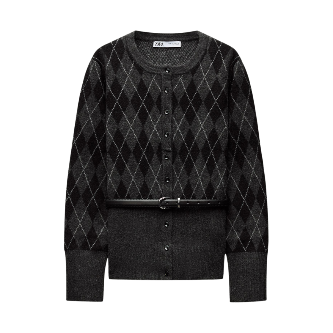 (W) 자라 다이아몬드 니트 벨트 자켓 그레이