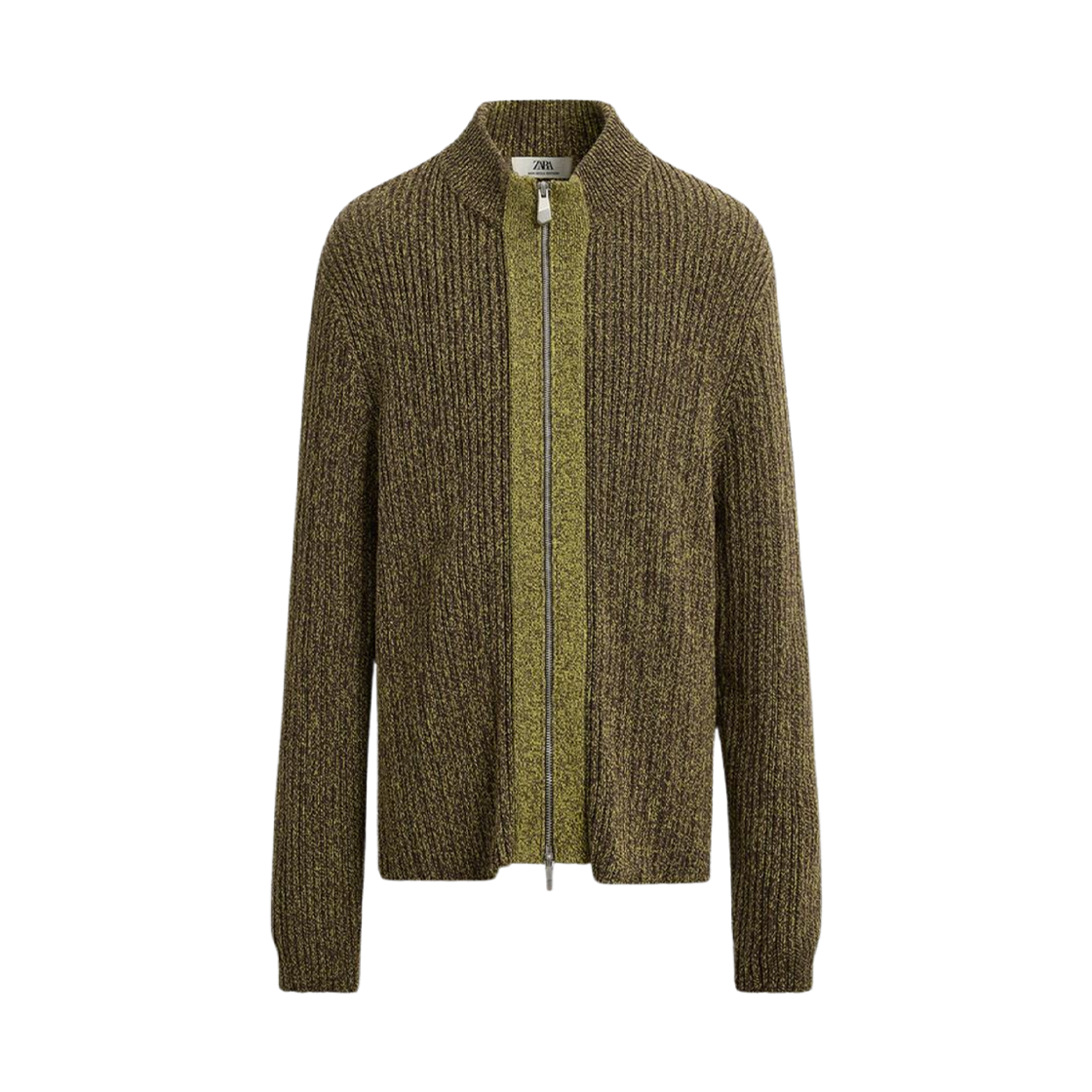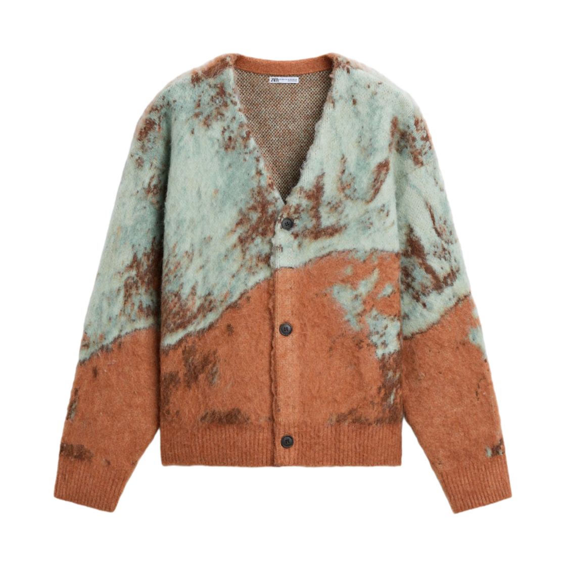 자라 브러쉬드 텍스쳐 자카드 가디건 오렌지