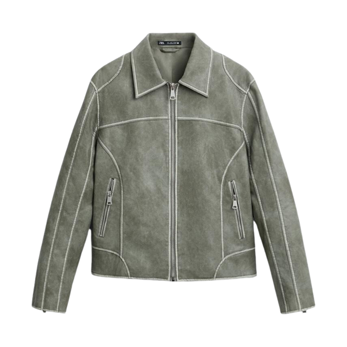 자라 페이디드 이펙트 레더 자켓 그레이 말