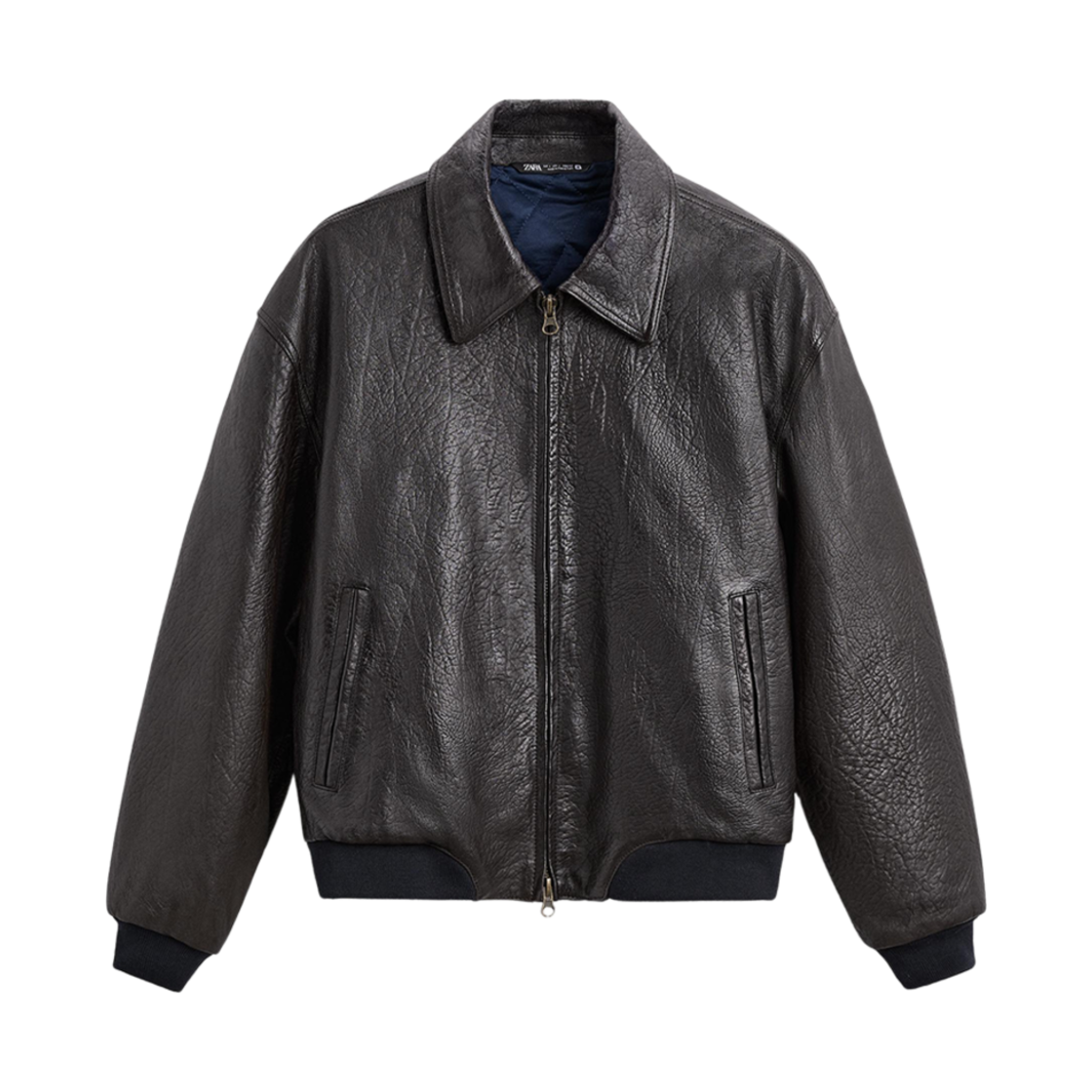 자라 리미티드 에디션 빈티지 이펙트 레더 자켓 블랙