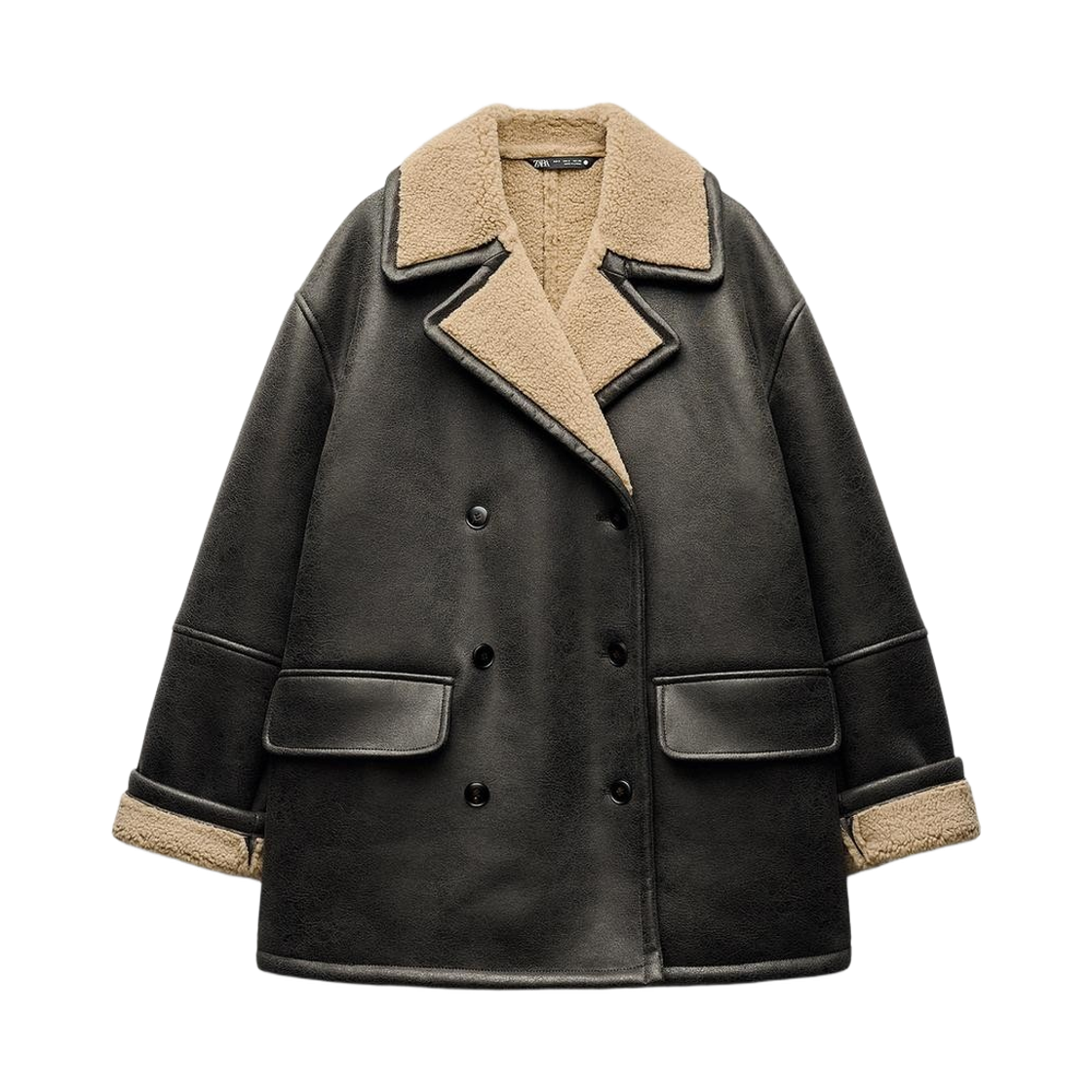 (W) 자라 숏 더블 페이스드 점퍼 다크 브라운