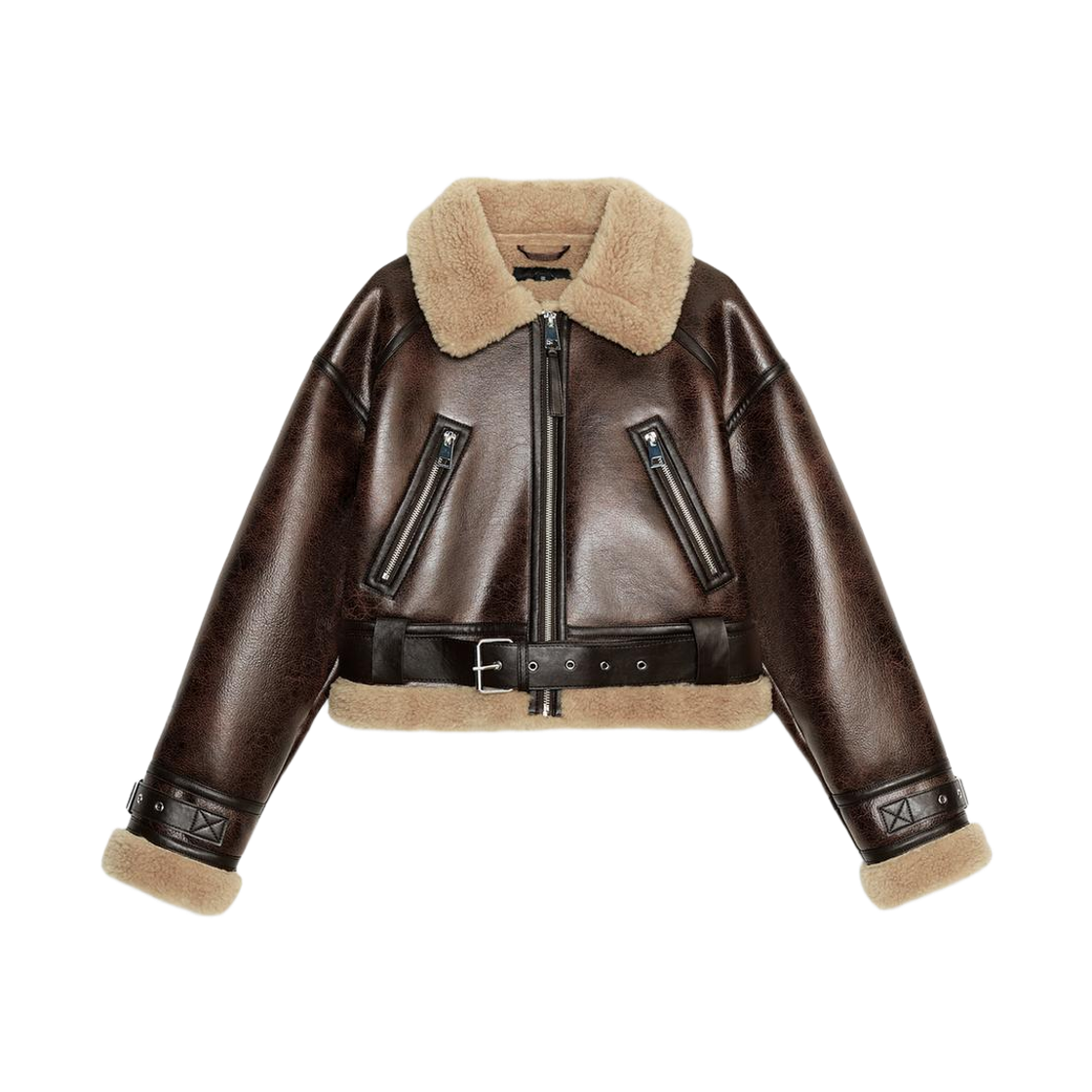 (W) 자라 ZW 더블 페이스드 바이커 자켓 브라운