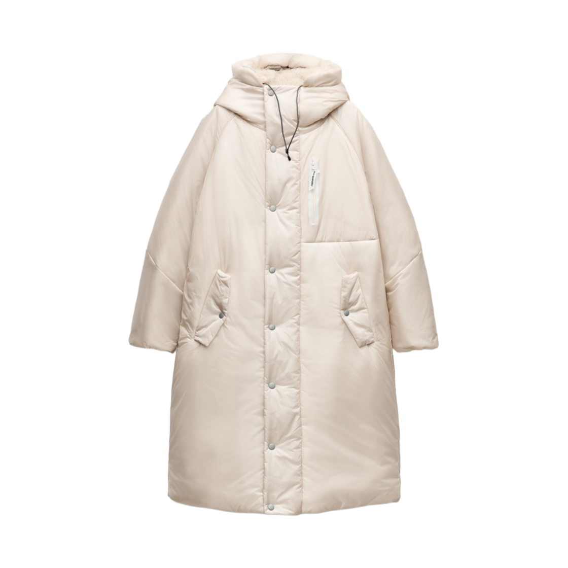 (W) 자라 세미 롱 윈드 프로텍션 후드 퍼퍼 자켓 에크루