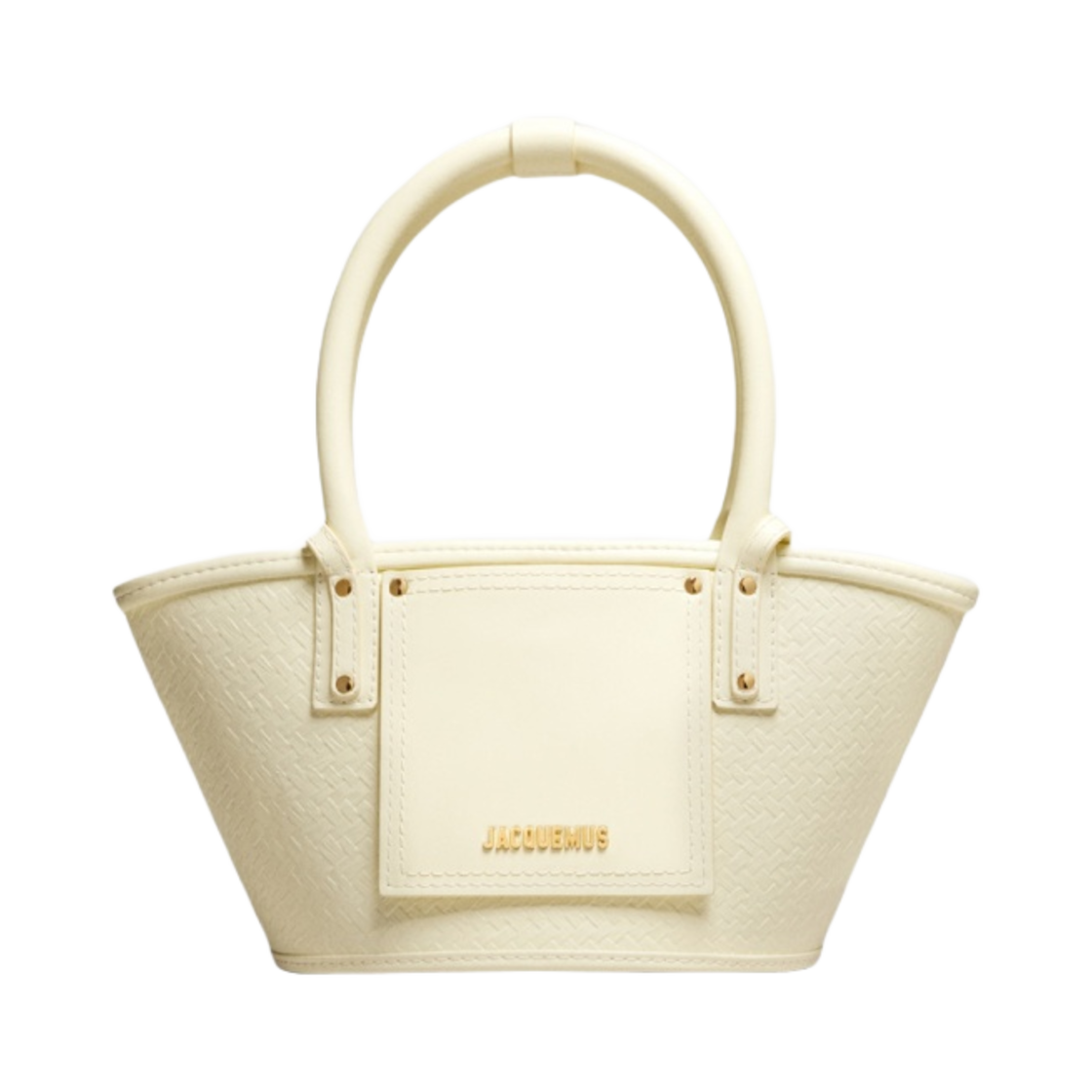 자크뮈스 르 쁘띠 파니에 솔리 퀴르 미니 레더 비치 바스켓 백 위브 엠보스 옐로우