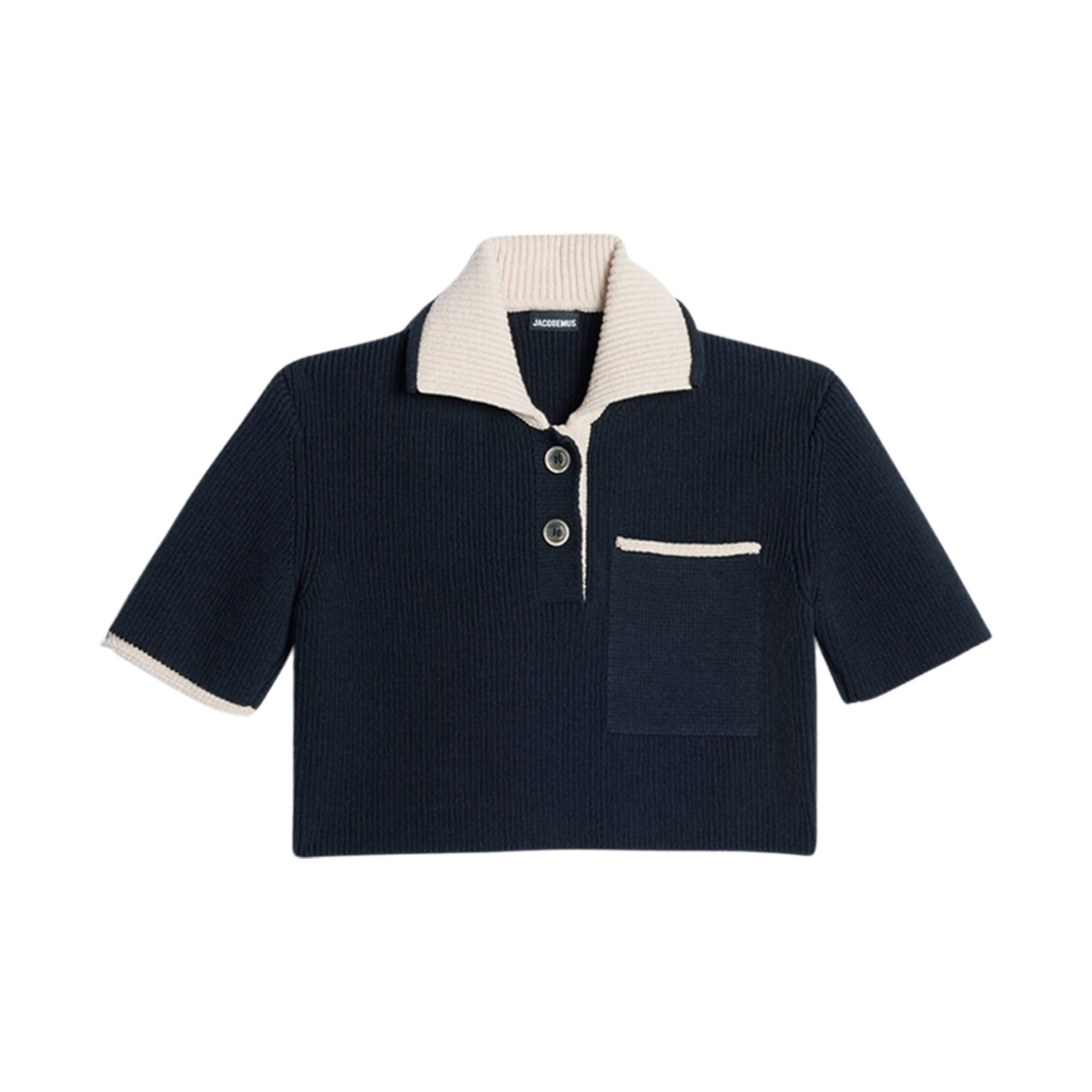 (W) 자크뮈스 르 폴로 마이유 아크로 컨트래스트 크롭 니트 폴로 네이비