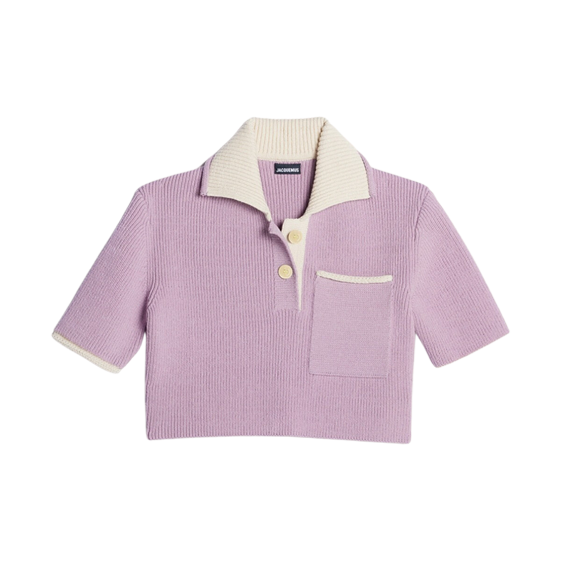 (W) 자크뮈스 르 폴로 마이유 아크로 컨트래스트 크롭 니트 폴로 퍼플