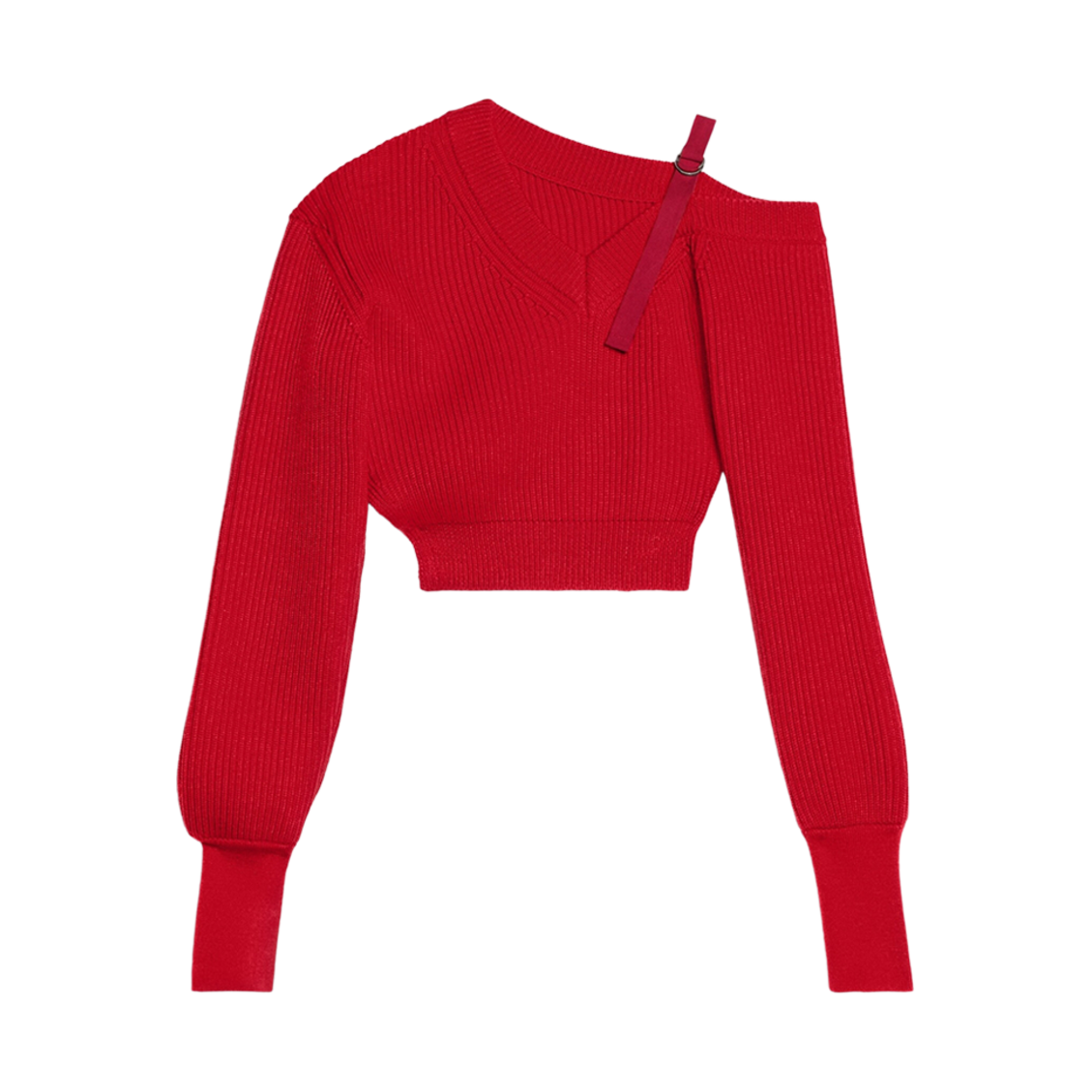 (W) 자크뮈스 라 마이유 세빌 어시메트릭 립드 풀오버 레드