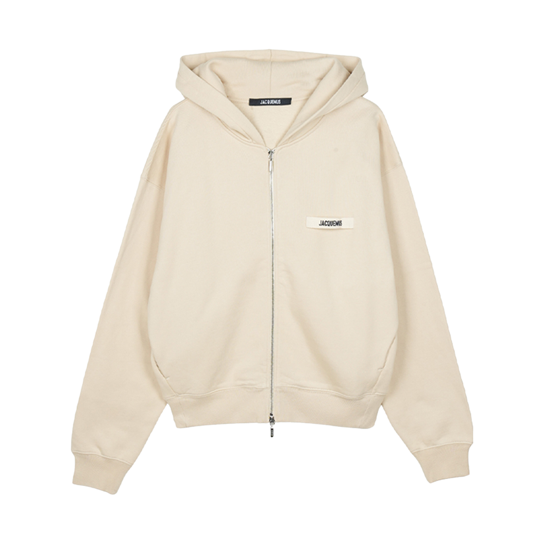 자크뮈스 르 후드 그로 그레인 로고 지퍼 후드 베이지