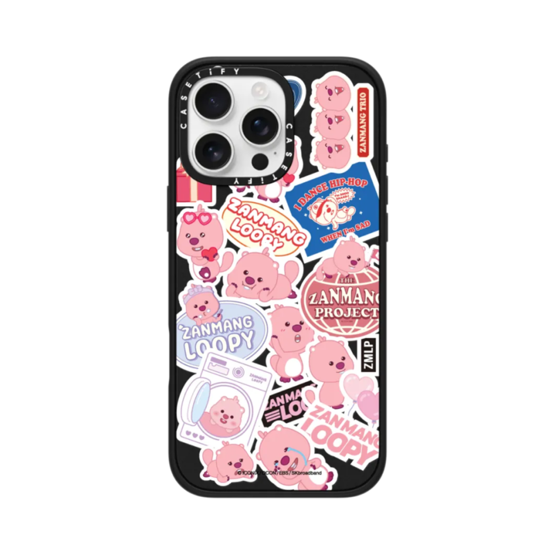 케이스티파이 x 잔망 루피 아이폰 2D 스티커 맥세이프 호환 임팩트 링 스탠드 케이스 매트 블랙