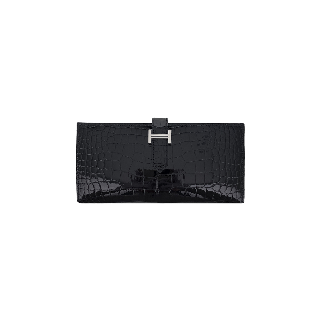 에르메스 엘리게이터 베안장지갑 블랙 은장 K각인(5HL0109)