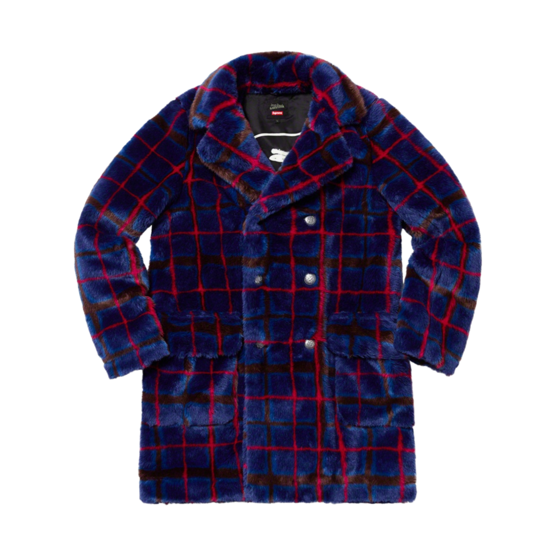 슈프림 x 장 폴 고티에 더블 브레스티드 플래드 포우 퍼 코트 블루 - 19SS