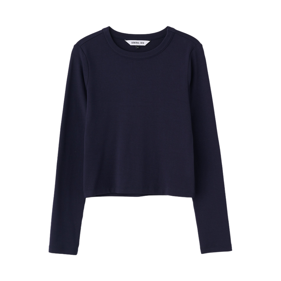 제너럴아이디어 우먼 슬림 크루넥 롱 슬리브 티 네이비