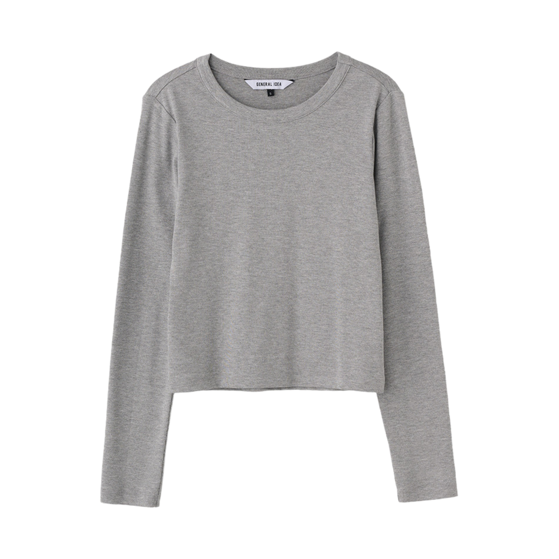 제너럴아이디어 우먼 슬림 크루넥 롱 슬리브 티 멜란지 그레이