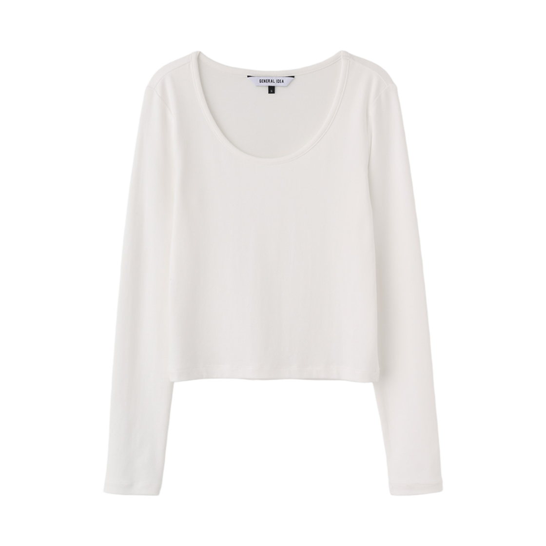 제너럴아이디어 우먼 슬림 U넥 롱 슬리브 티 화이트