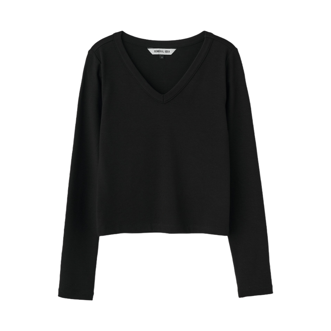 제너럴아이디어 우먼 슬림 브이넥 롱 슬리브 티 블랙