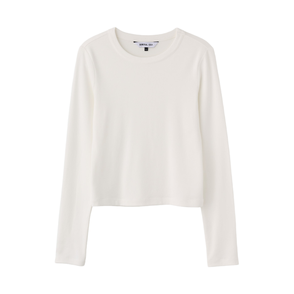 제너럴아이디어 우먼 슬림 크루넥 롱 슬리브 티 화이트