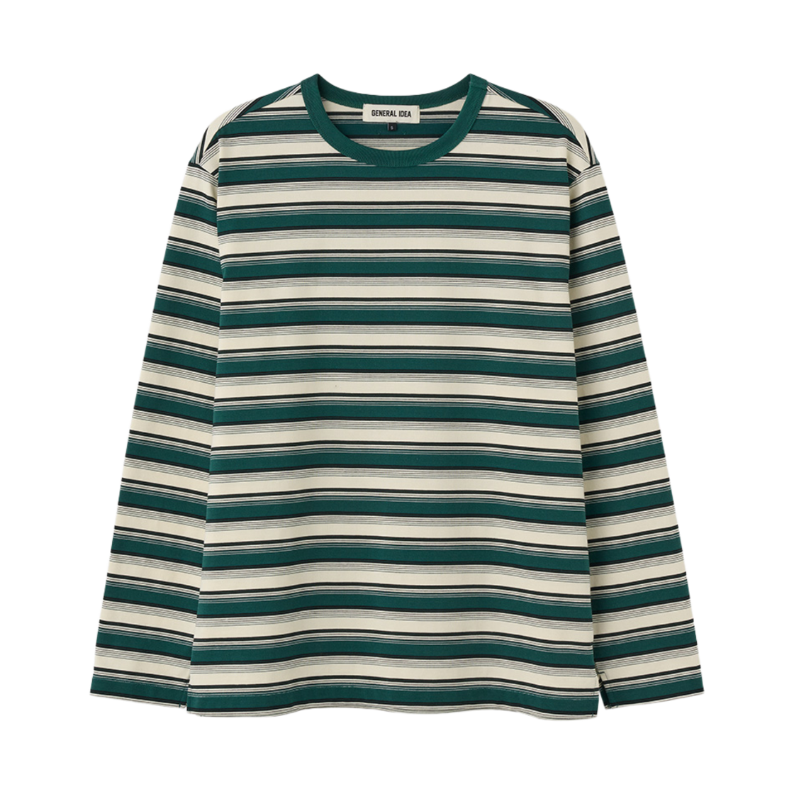 제너럴아이디어 유니섹스 멀티 스트라이프 롱 슬리브 티 그린