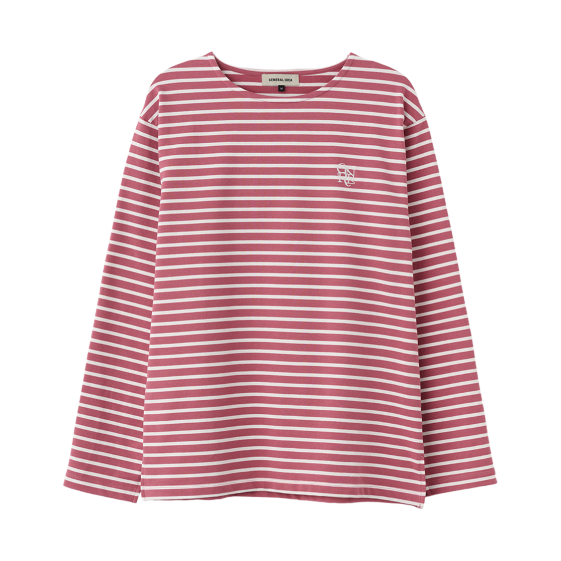 제너럴아이디어 유니섹스 롱슬리브 보더 티셔츠 모브 핑크