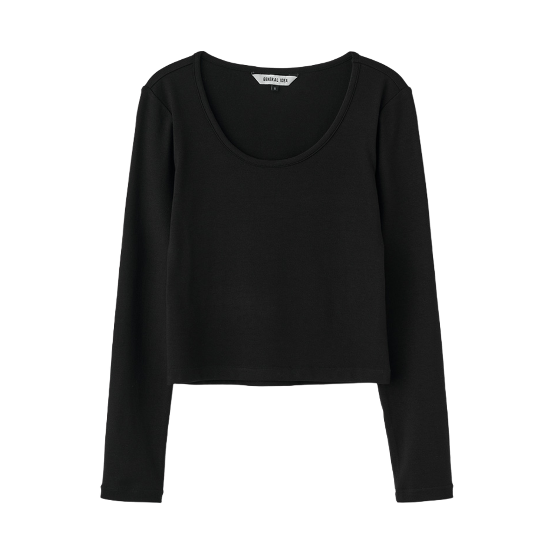 제너럴아이디어 우먼 슬림 U넥 롱 슬리브 티 블랙