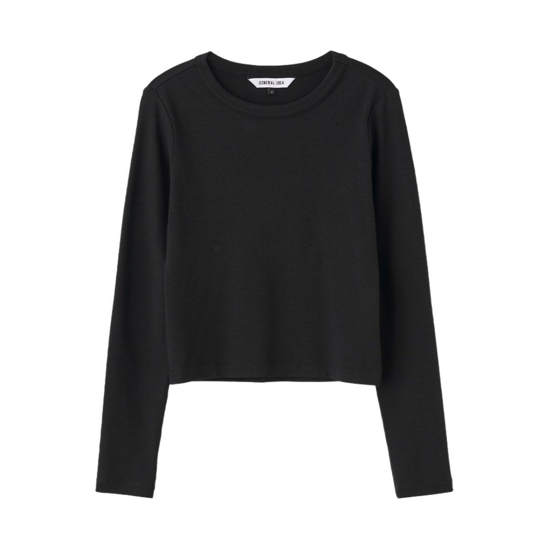 제너럴아이디어 우먼 슬림 크루넥 롱 슬리브 티 블랙
