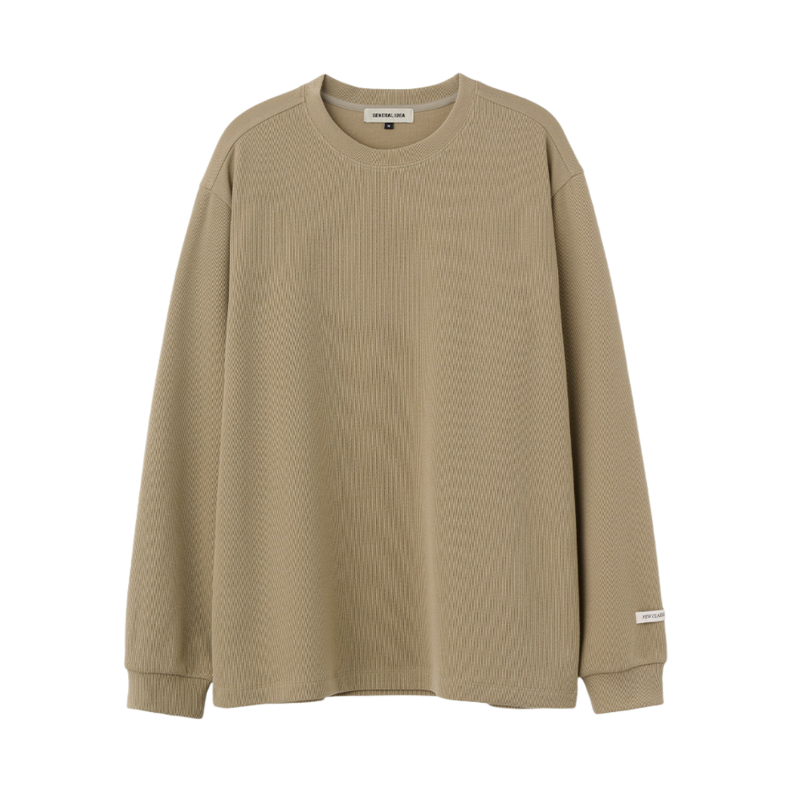제너럴아이디어 유니섹스 베이직 사카리바 롱 슬리브 티 베이지