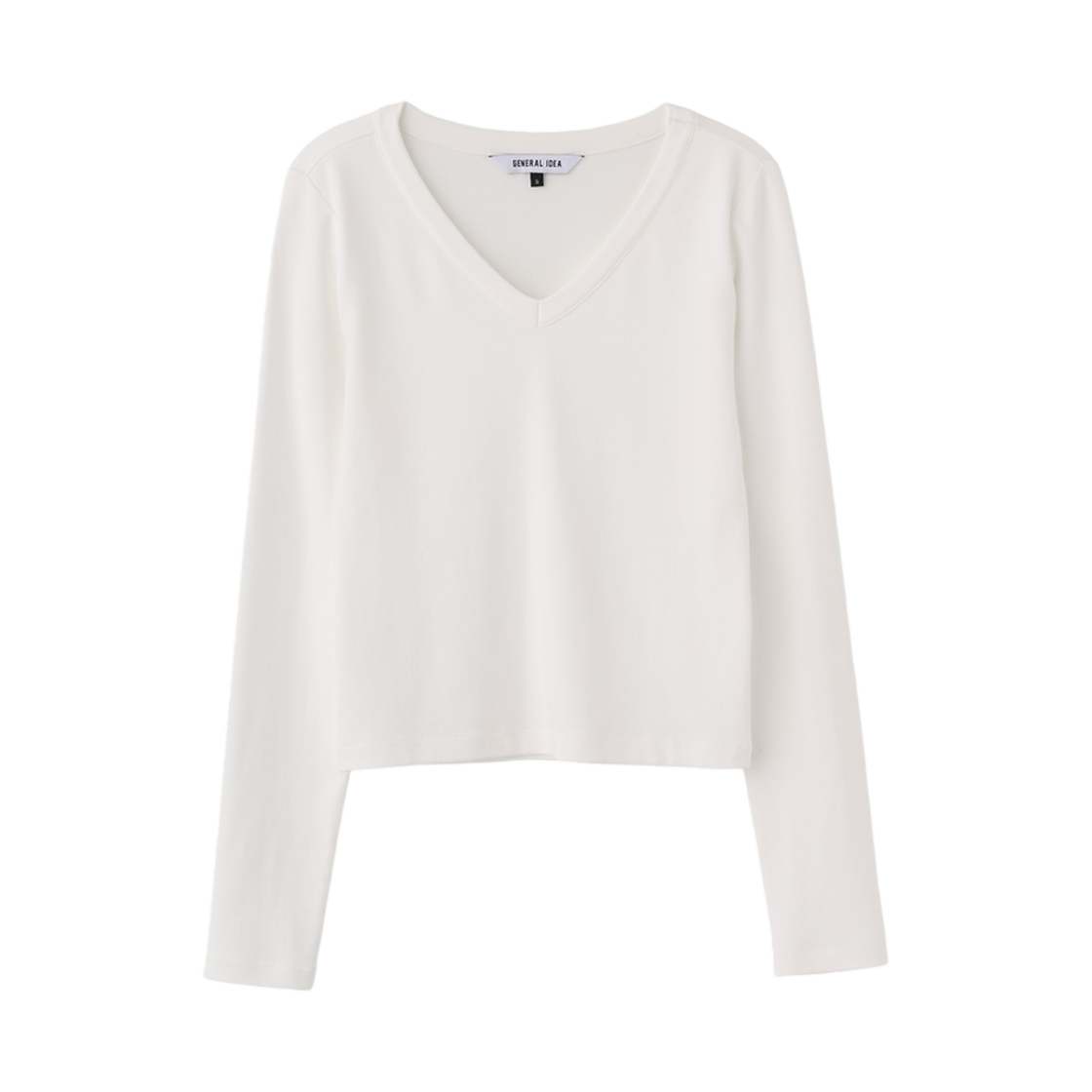 제너럴아이디어 우먼 슬림 브이넥 롱 슬리브 티 화이트