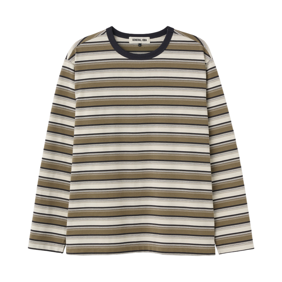 제너럴아이디어 유니섹스 베이직 스트라이프 롱 슬리브 티 올리브