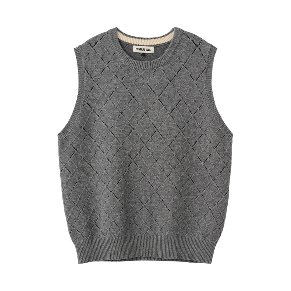 제너럴아이디어 맨 에센셜 아가일 펀칭 니트 베스트 그레이