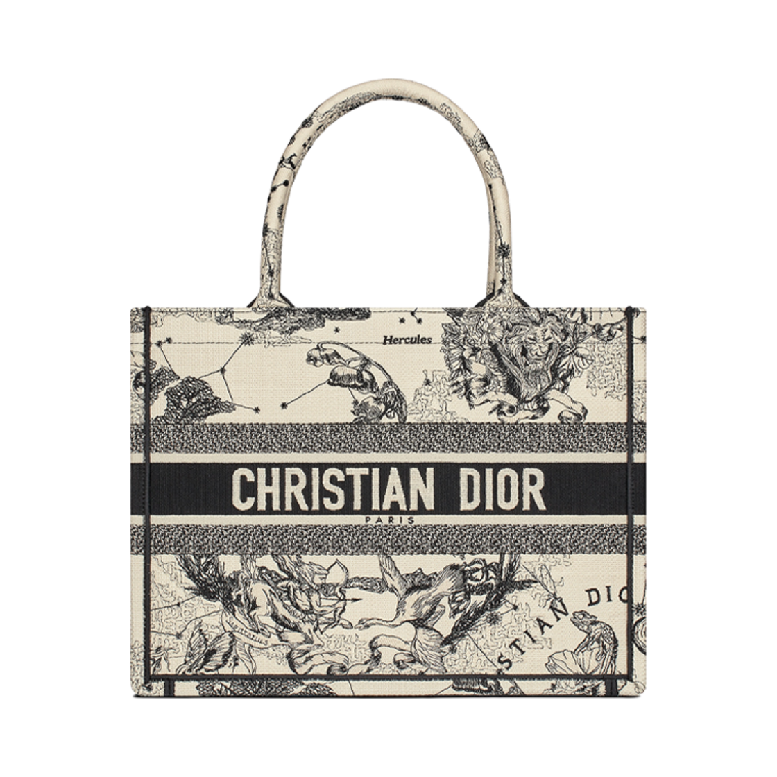 디올 미디움 북 토트백 디올 조디악 자수 카프스킨 라떼 멀티컬러 블랙