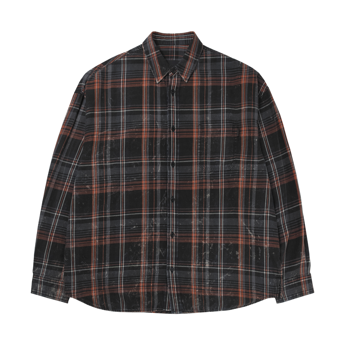 준지 아일랜드 워싱 체크 루즈핏 셔츠 오렌지 - 25FW