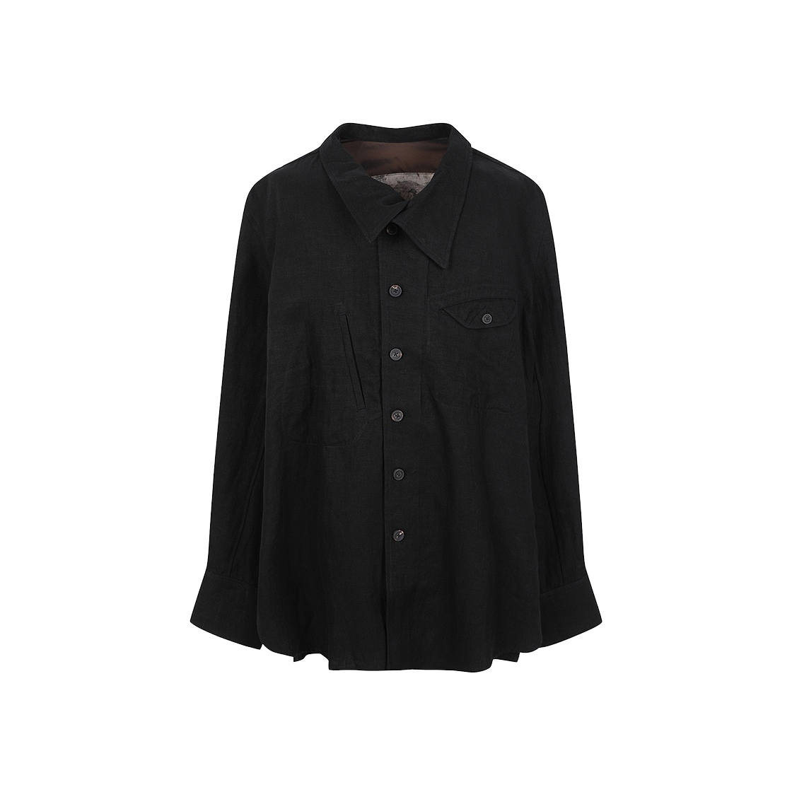 지기첸 스탠드 칼라 포켓 셔츠 블랙 - 24FW