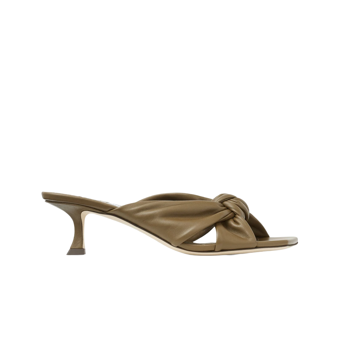 (W) 지미추 에비뉴 50 나파 레더 뮬 카라멜