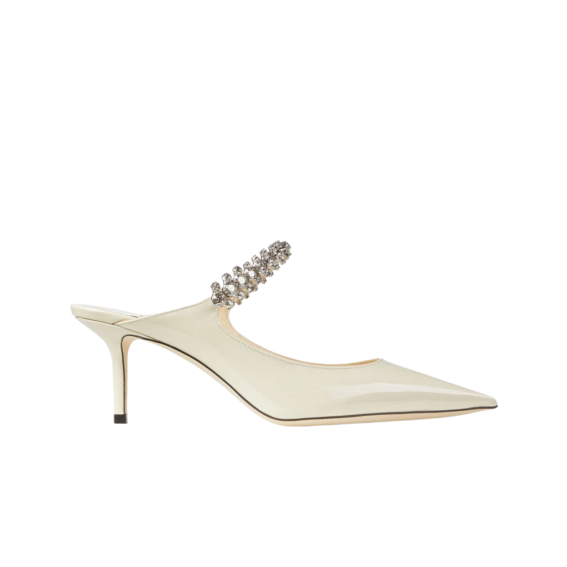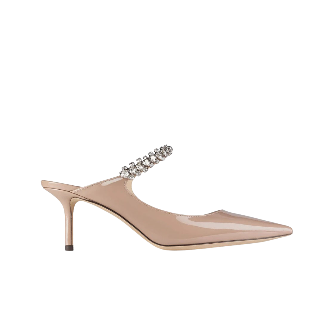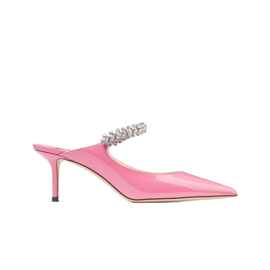 (W) 지미추 빙 65 페이턴트 레더 뮬 크리스탈 스트랩 발레 핑크