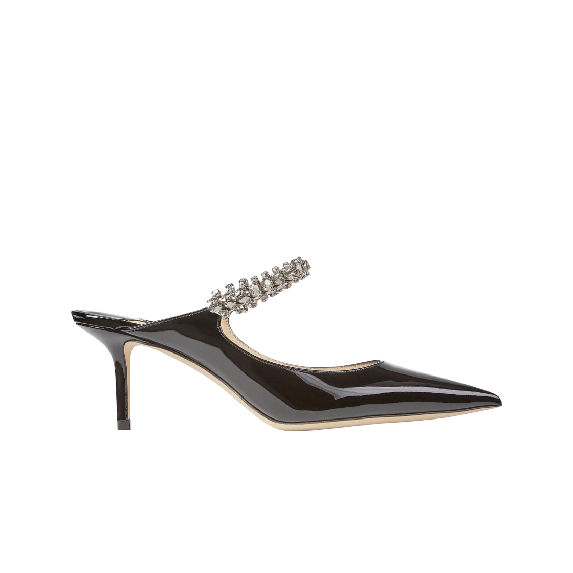 (W) 지미추 빙 65 페이턴트 레더 뮬 크리스탈 스트랩 블랙