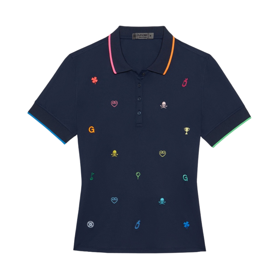 지포어 자수 스컬 테크 저지 모던 스프레드 칼라 폴로 루바브