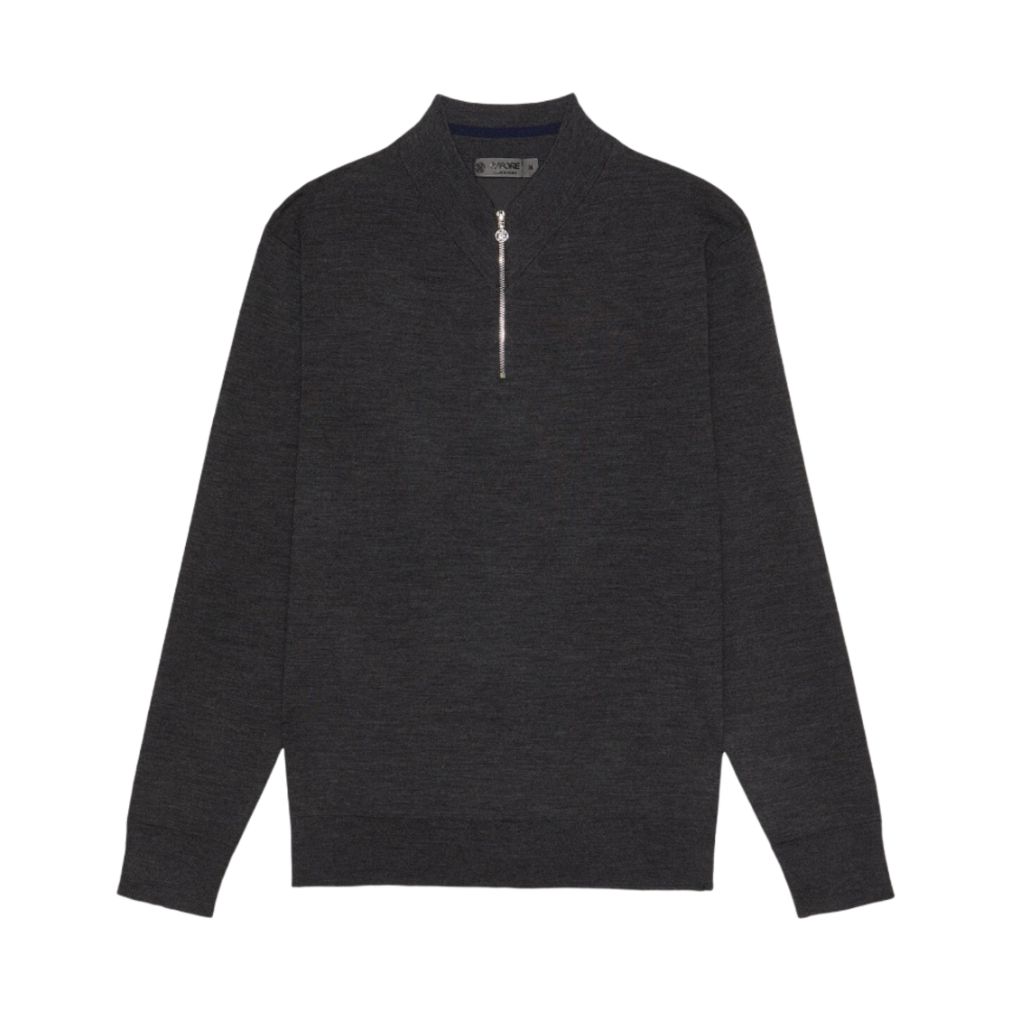 지포어 콘트라스트 브이넥 메리노 울 쿼터 집 스웨터 다크 차콜 헤더 그레이