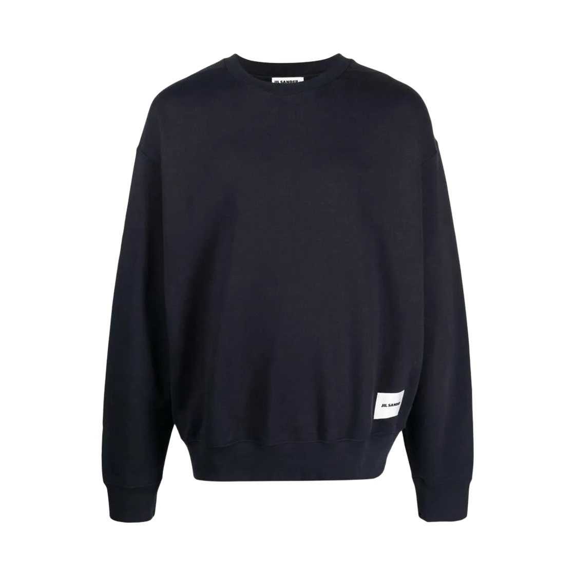 질 샌더 플러스 로고 패치 크루 스웨터 네이비