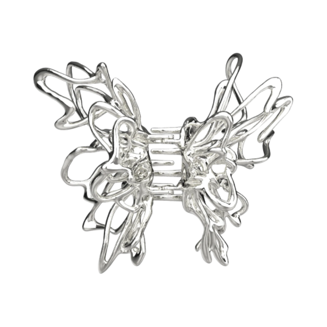 (W) 위민 리플 리퀴파이드 메탈 버터플라이 헤어 클로 클립 실버