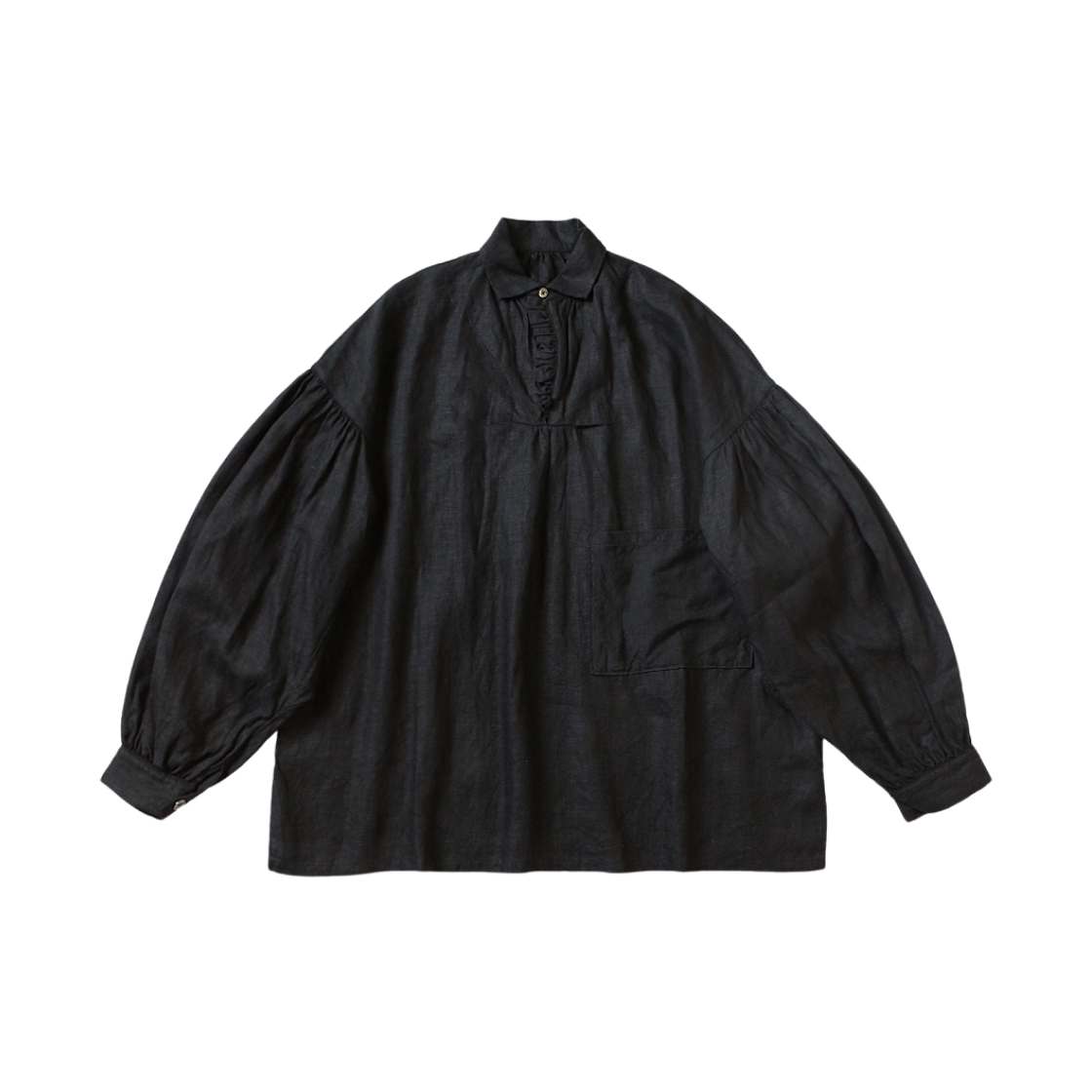 캐피탈 리넨 캔버스 프릴 집시 블라우스 블랙