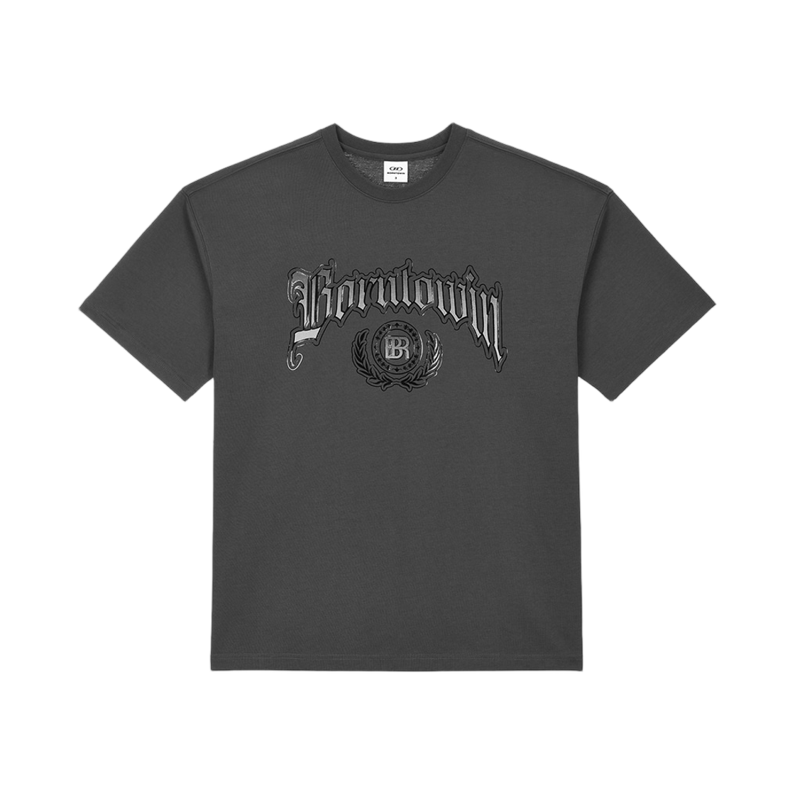 본투윈 엠블럼 로고 세미 오버핏 티셔츠 차콜