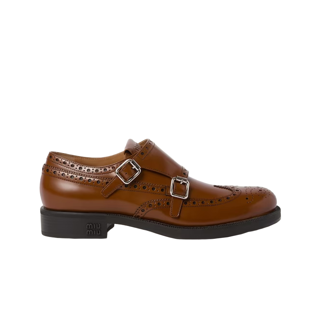(W) 처치스 x 미우미우 브러쉬드 레더 더블 몽크 브로그 슈즈 토바코